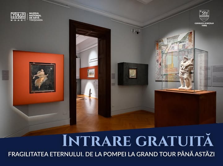 Noch bi zum 29. März 2026 zeigt das Nationale Kunstmuseum Timișoara die internationale Ausstellung „Die Fragilität des Ewigen. Von Pompeji bis heute“. Im Mittelpunkt steht die antike Stadt Pompeji und ihr Einfluss auf die europäische Kunstgeschichte. Über 100 bedeutende Werke aus renommierten italienischen Museen laden zu einer eindrucksvollen Reise durch Kunst und Geschichte ein.