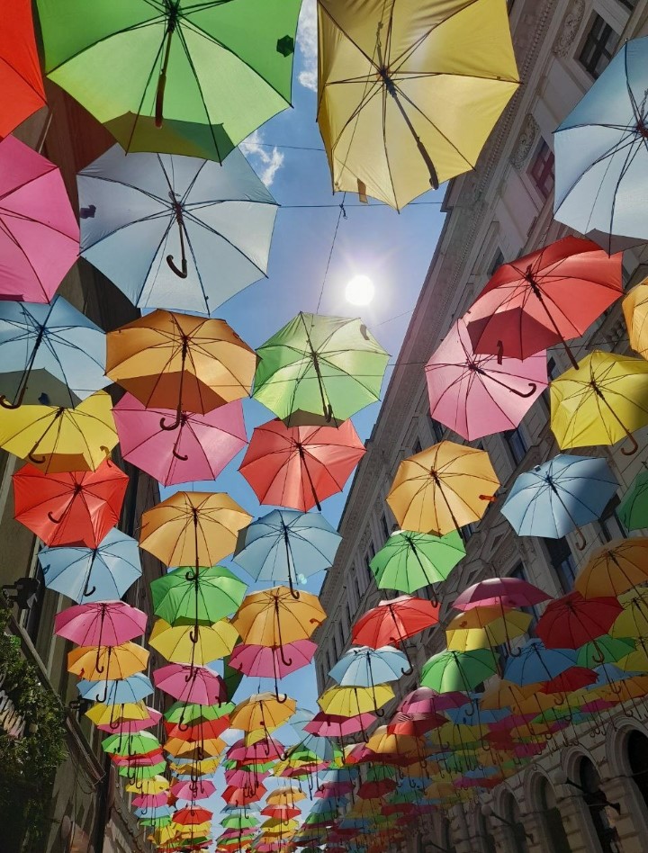 Die Bunte Regenschirme in Timisoaras Fußgängerzone