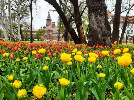 Avec l’impressionnante église du Millénaire en arrière-plan, la ville se montre sous son plus beau jour. Que ce soit pour une promenade en bateau ou une balade le long du fleuve, c’est le moment idéal pour profiter de l’ambiance printanière ! 🌷💛