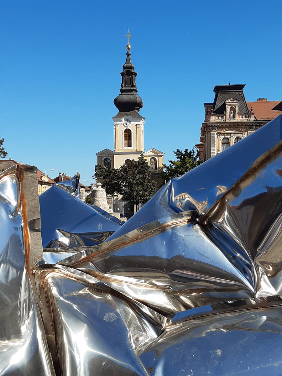 A timisoarai Strada Alba Iulia utcán található színes esernyők egy művészeti installáció részei, amely átalakítja a közterületet. Az árnyékot adó esernyők életet és színt visznek az utcára, élő műalkotássá változtatva azt. Az installáció népszerű fotózási helyszínné vált, és hozzájárul a belváros egyedi varázsához.