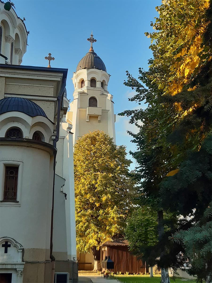 A temesvári Szűz Mária születése ortodox templom (románul: Biserica Nasterea Maicii Domnului) lenyűgöző harangtornya hat történelmi harangot rejt, amelyek 1936-ból származnak, és harmonikus arpeggióban szólalnak meg. Önálló építményként kiegészíti a templom bizánci ihletésű építészetét, és az Elisabetin kerület egyik legszembetűnőbb nevezetessége.